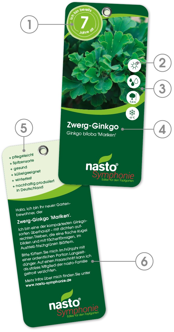 Jede Pflanze, die wir Ihnen liefern ist mit einem sehr hochwertigen Etikett ausgestattet: Sie ersparen zeitaufwendige Erklärungen und sind so aufbereitet, dass Ihre Kunden nichts vermissen und bestens informiert sind.